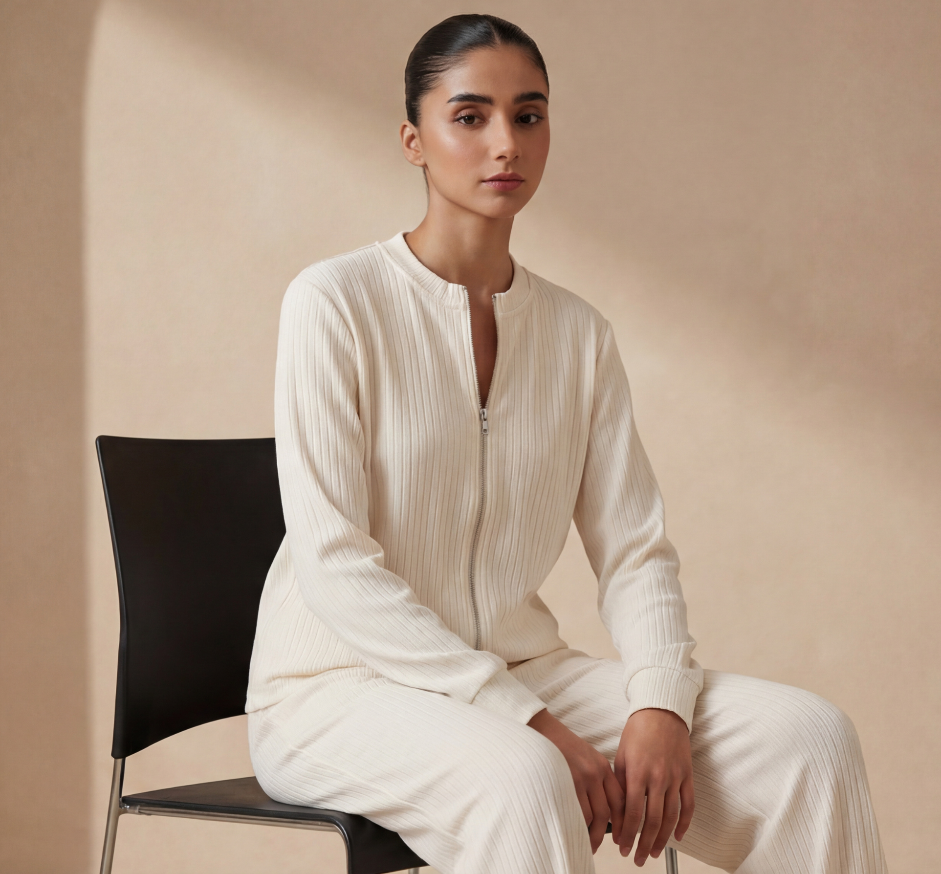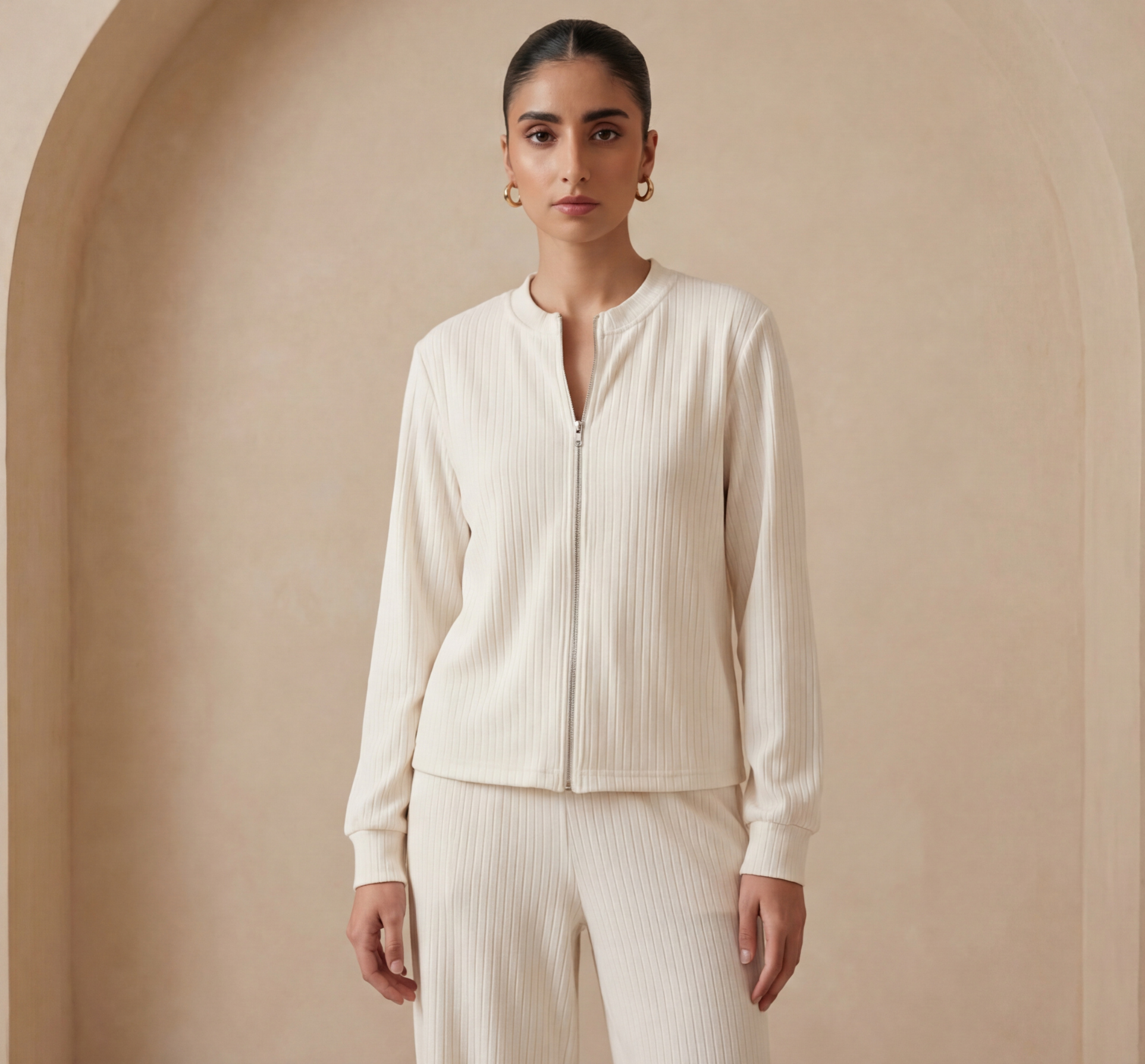 IVORY RIBBED ZIP CO-ORD SET - The Complete 2-Piece Look